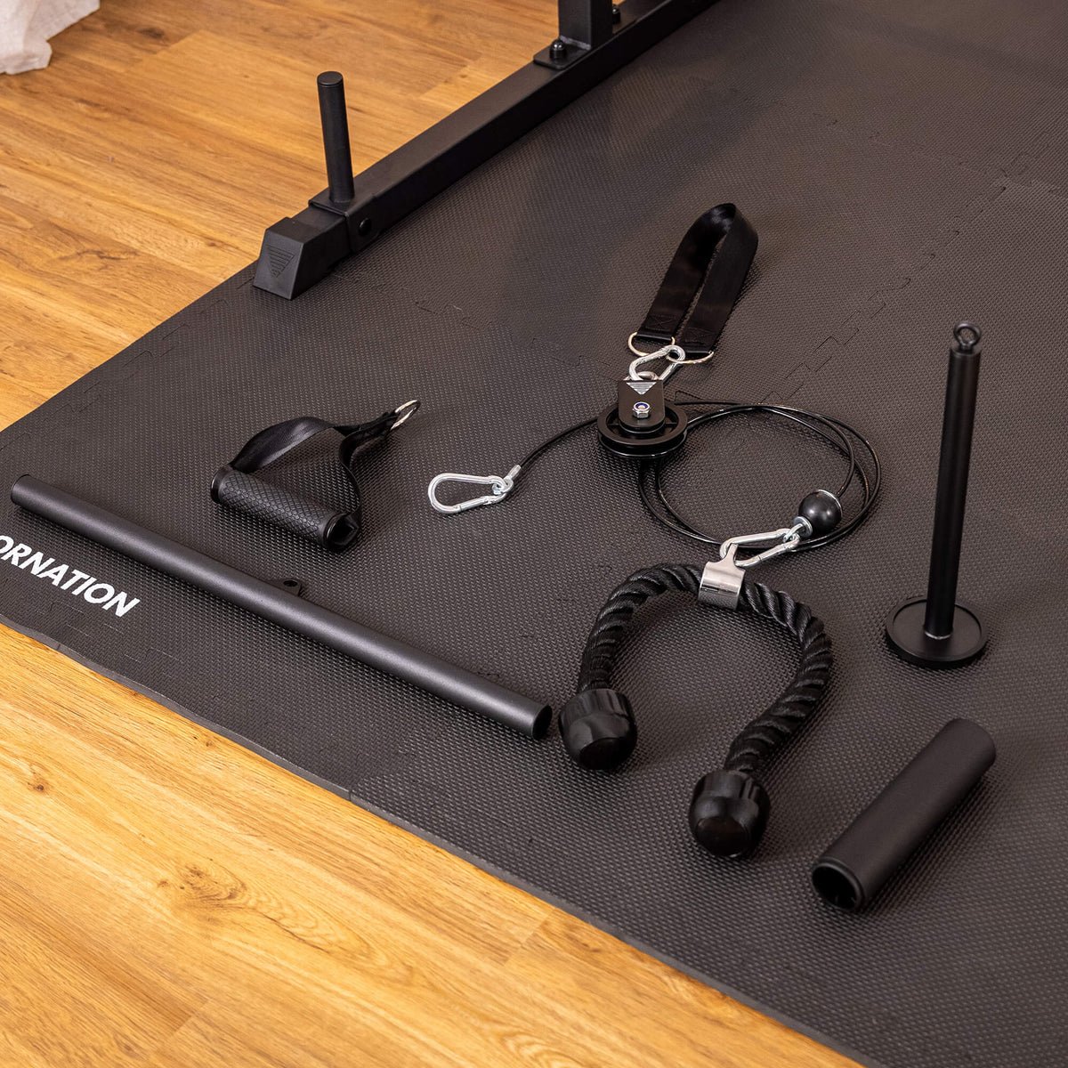 Le Système de Poulie ajoute un entraînement complet au câble à ton home gym. Parfait si tu veux combiner Street Workout et renforcement fonctionnel.