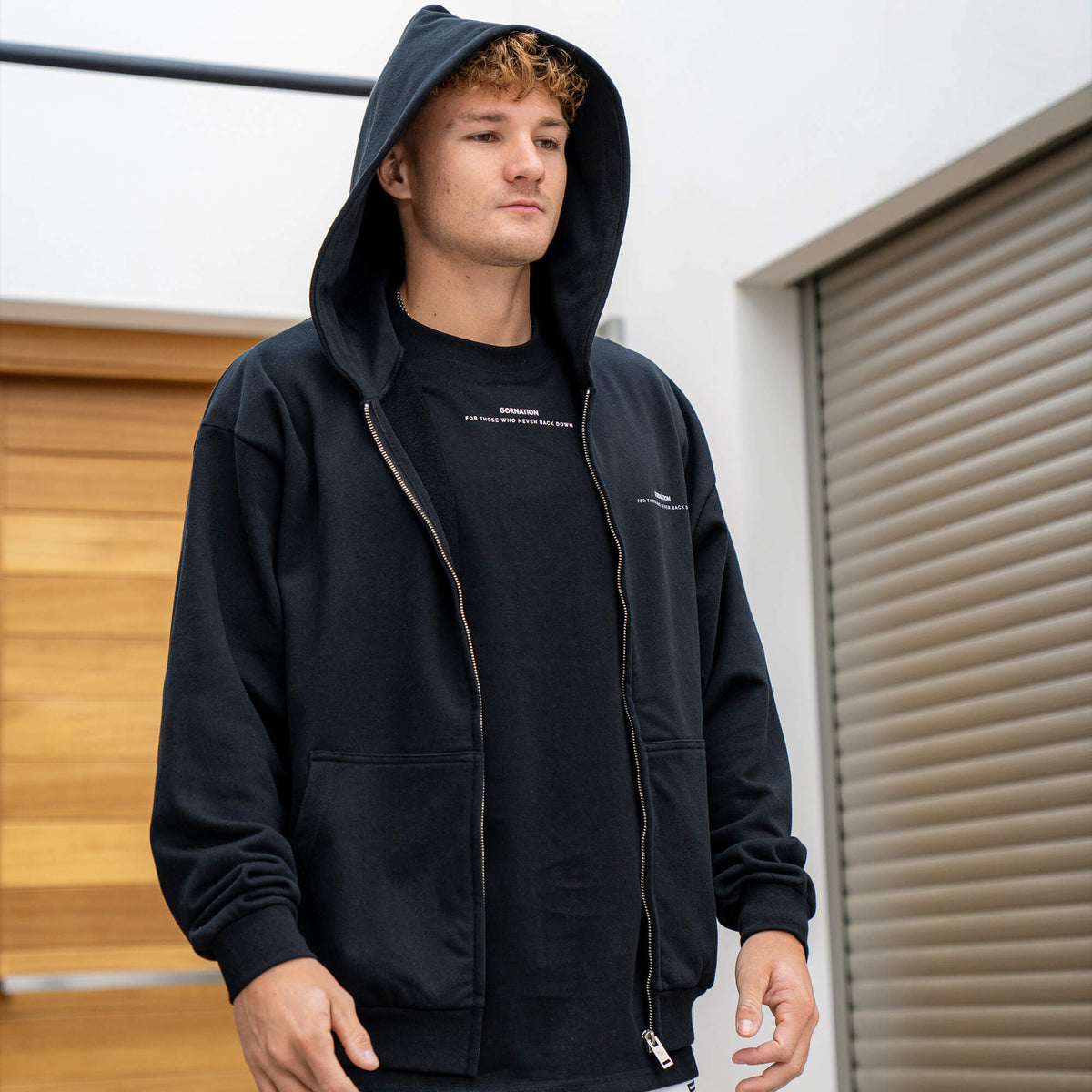 A modern streetwear jacket inspired by the anime motifs Balance, Control, and Strength.