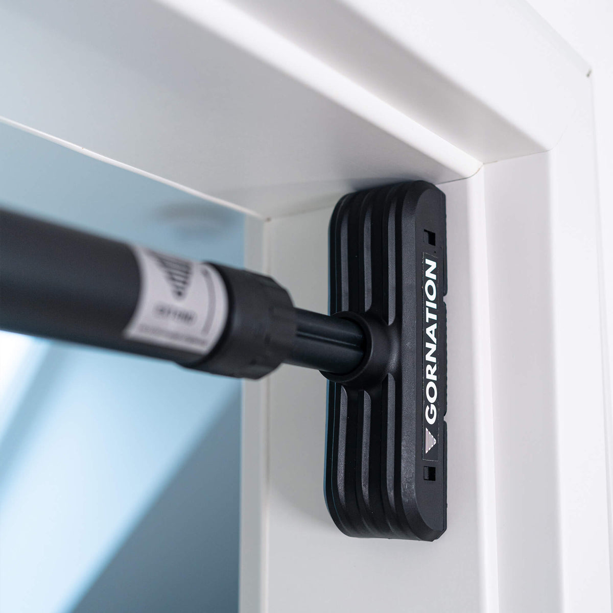 The Extend-it bar is designed for universal compatibility with all standard door frames. Your door frame's inner diameter must be between 74 cm and 90 cm. The rotating mechanism allows for precise adjustment, while the rubber-protected ends, with a contact surface of 17 cm by 5 cm, evenly distribute pressure to ensure stability without damaging walls or door frames. Important: The door frame's depth should be at least 5 cm for proper installation.