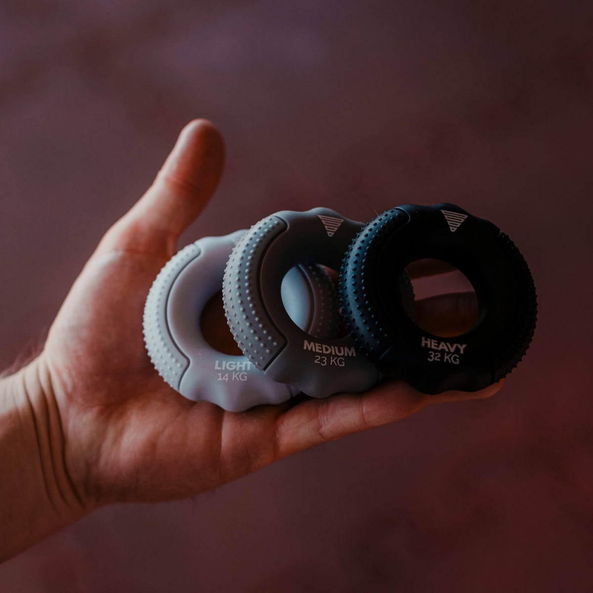 Whether you're a beginner or an advanced athlete, the Grip Strength Trainer Set offers the right challenge for every performance level. The resistance can be optimally adjusted to your personal training level through the three different stages, allowing you to build and enhance your grip strength in a targeted way. The durable silicone rings feel comfortable in the hand and are skin-friendly, ensuring a comfortable training experience wherever you are.