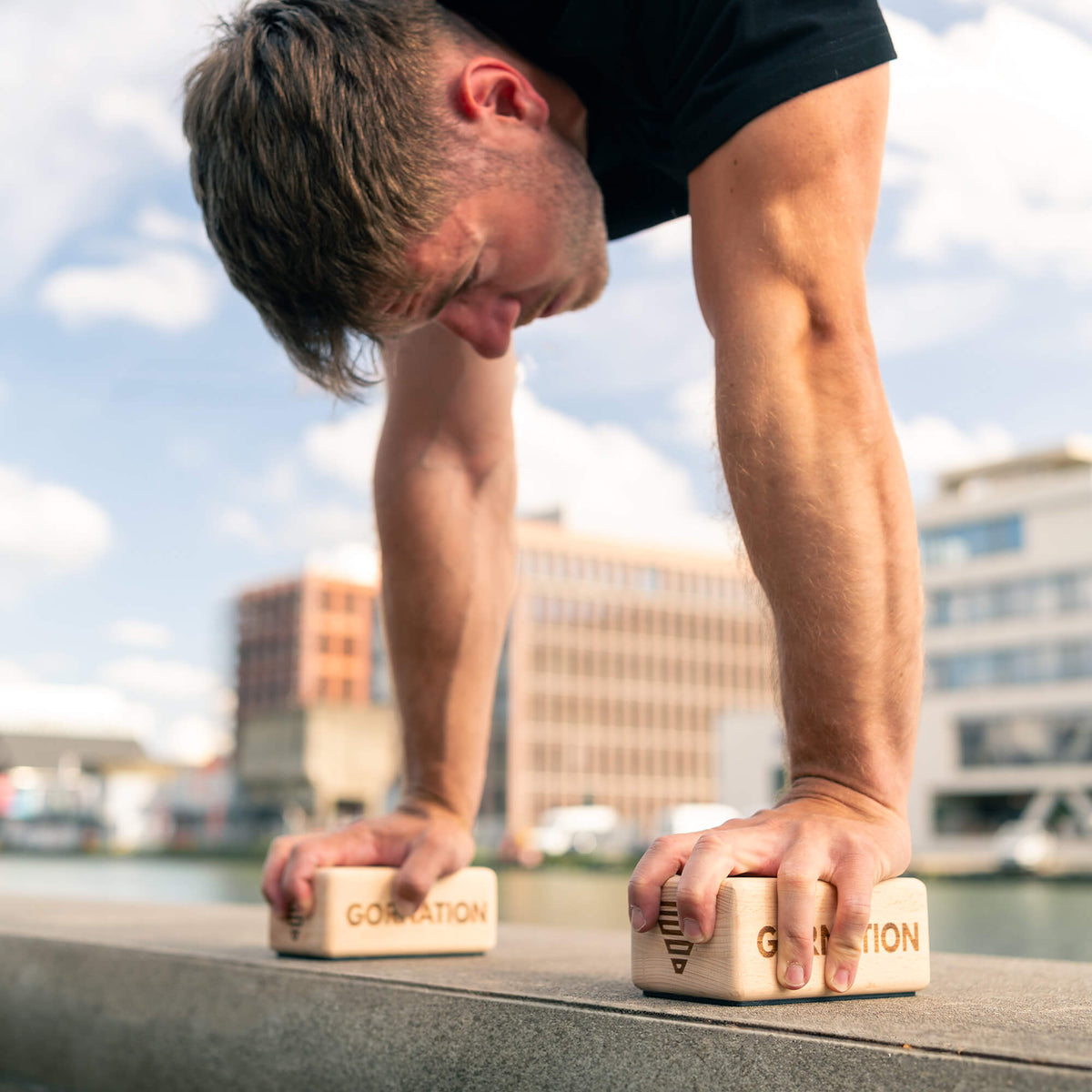 With our Wooden Blocks, you can take your training to the next level. Training on the blocks creates new stimuli for your wrists and arms, leading to increased control and strength. Whether you’re working on handstands, L-sits, V-sits, or push exercises – the blocks provide a stable surface and increase the range of motion, allowing you to perform exercises even more effectively.