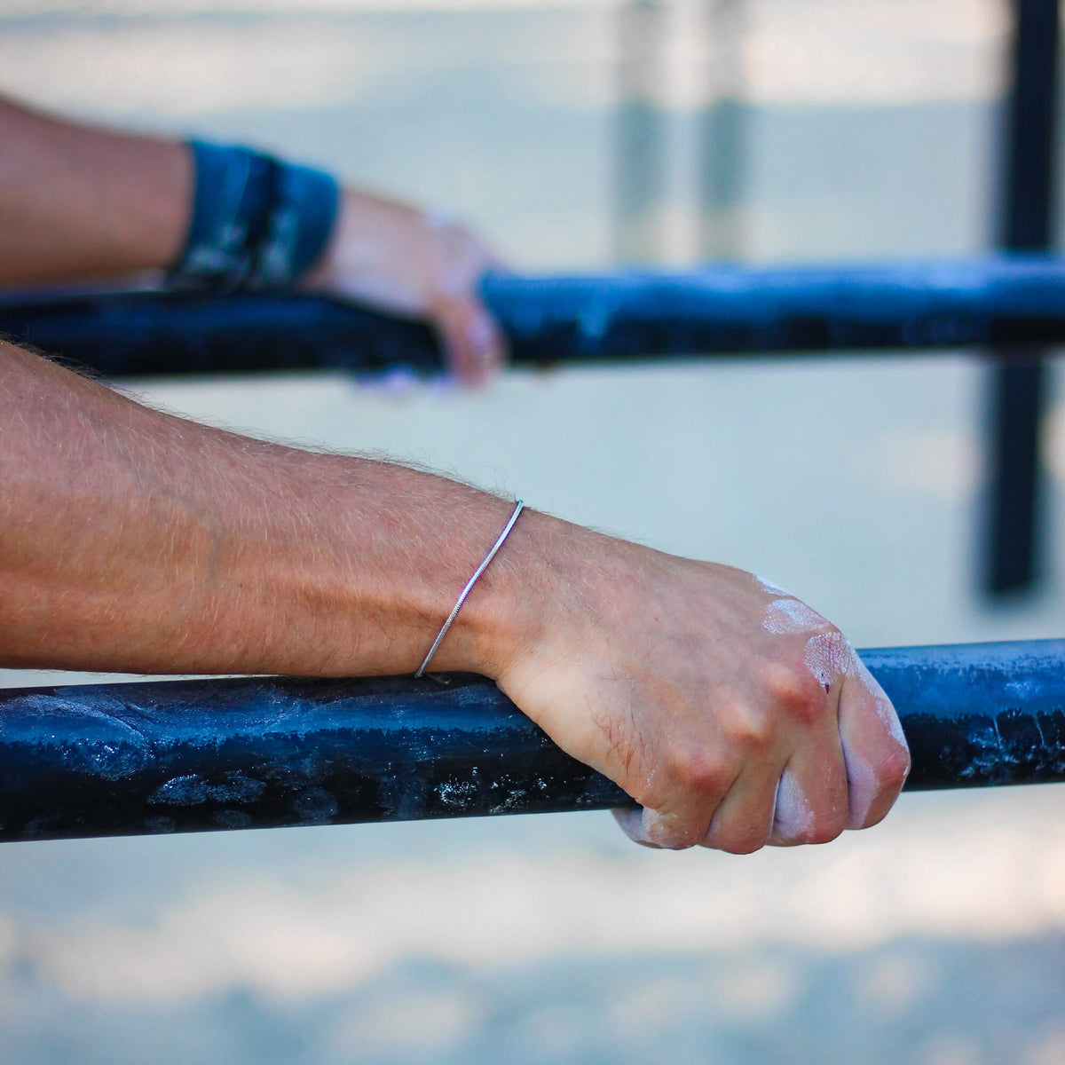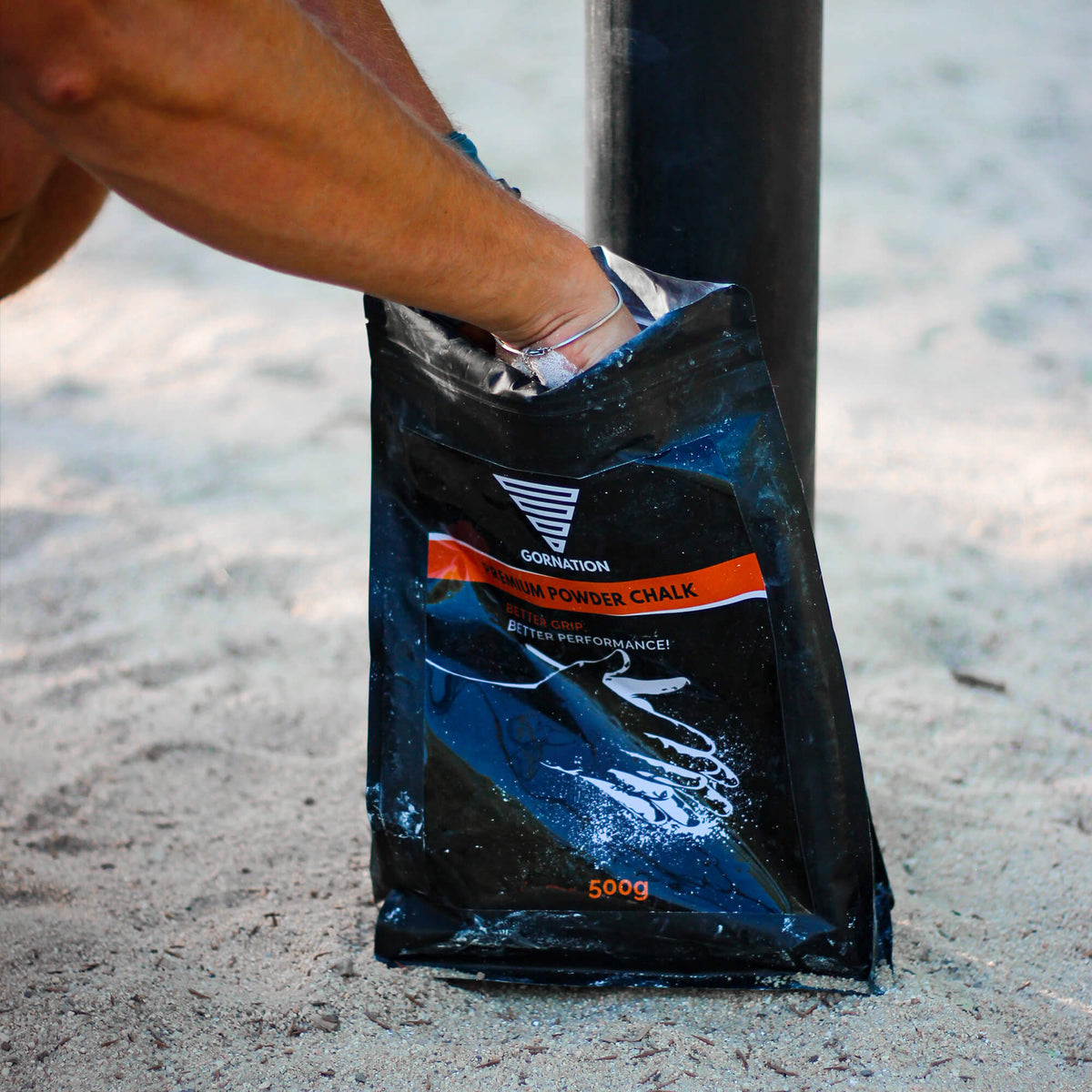 The chalk helps you against slipping on the bar & rings. So you can use your strength better, improve your performance in training and prevent sweaty hands.
