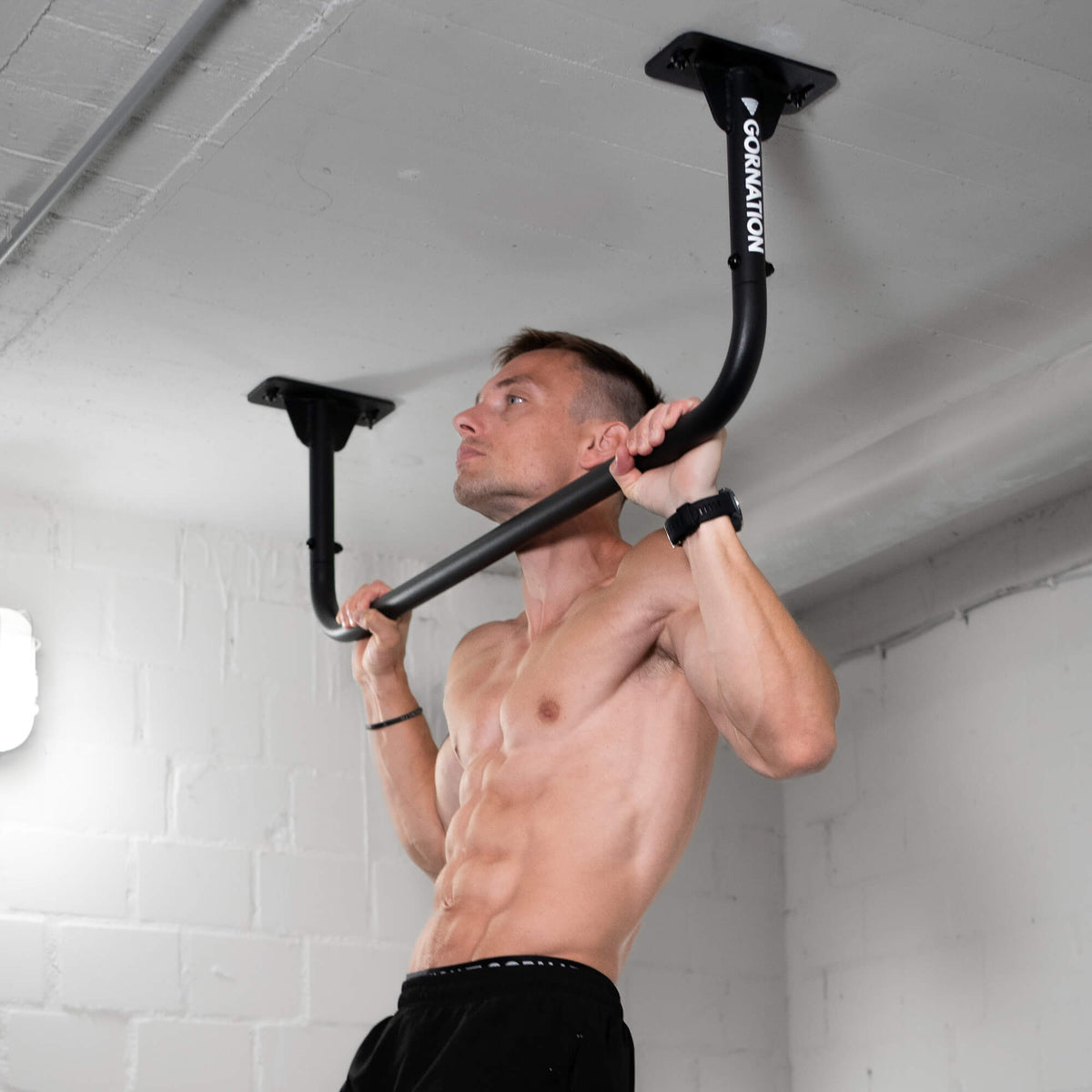 The Pull Up Bar Multi by GORNATION is the ultimate workout tool for at home. Whether for pull-ups, chin-ups, L-sits, leg raises or front lifts - this pull-up bar offers you the stability and flexibility you need for an effective workout. Invest in your fitness and experience the benefits of a high-quality ceiling pull-up bar.