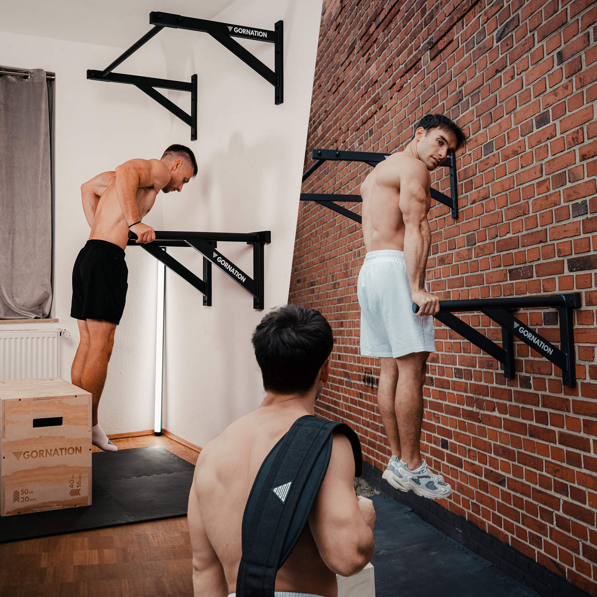 The Wall Mounted Dip Bars are versatile — ideal for classic dips, weighted dips, L-sits, knee raises, static holds, and more. The adjustable width lets you customize the setup to your needs. For more effective strength training, we recommend using the GORNATION Dip Belt. To support your wrists during intense sessions, consider our Power Wrist Wraps.