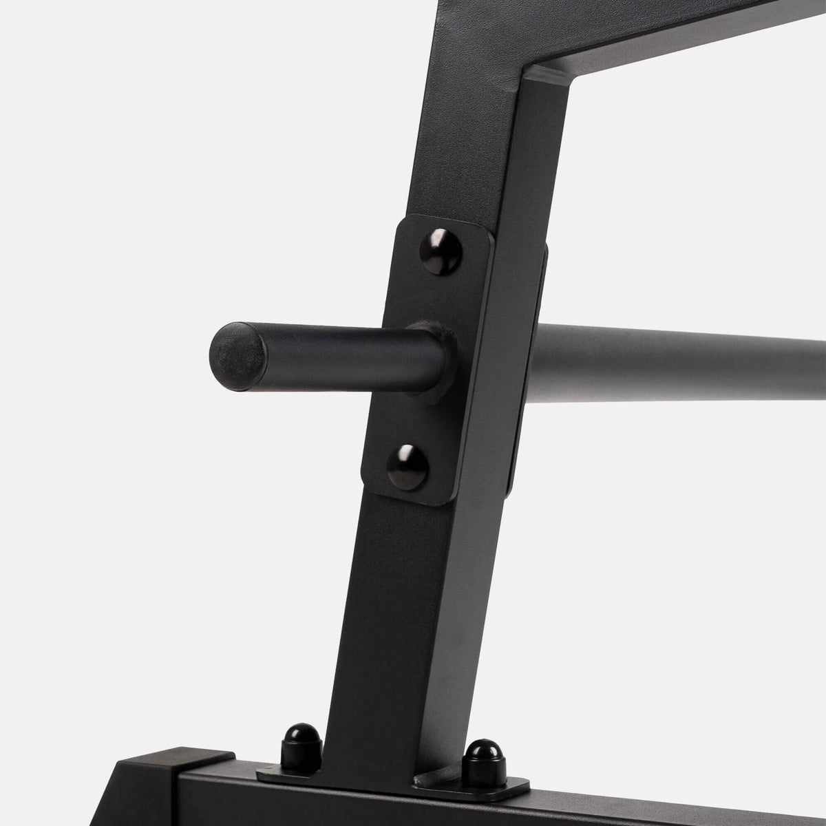 The weight pin holder are designed as a practical extension of the Premium Pull Up Station. They are mounted at the rear of the station using the existing screws from the lower stability/Push Up bar. This allows for simple and secure installation without any additional mounting hardware.